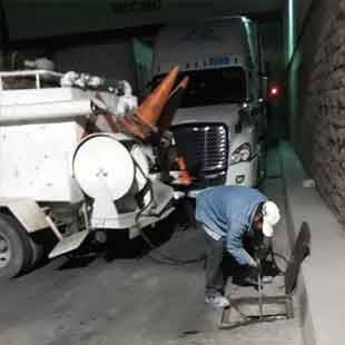 Succión de lodos y limpieza profunda de drenajes con camión Vactor de alta capacidad.